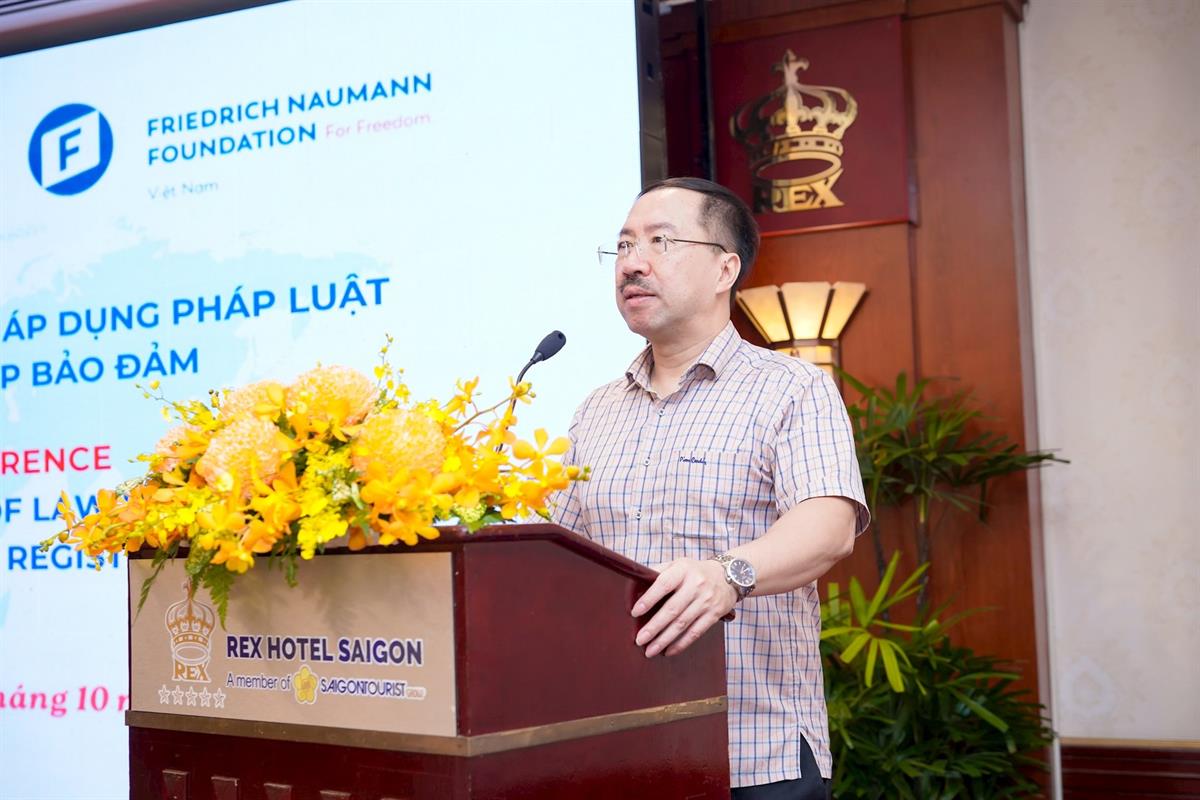 Hai sự kiện được tổ chức trong cùng ngày, với sự tham gia của gần 100 đại biểu trực tiếp và 180 đại biểu dự trực tuyến đến từ Bộ Tư pháp, đại diện các cơ quan: Sở Tư pháp, Sở Nông nghiệp và Môi trường, Ngân hàng Nhà nước khu vực, Tòa án nhân dân; đại diện một số tổ chức tín dụng, tổ chức hành nghề công chứng, tổ chức luật sư, các tổ chức tín dụng, Văn phòng đăng ký đất đai, doanh nghiệp công nghệ tại TP. Hồ Chí Minh và tại một số tỉnh, thành phố khác như TP. Đà Nẵng, TP. Hải Phòng, TP. Huế, tỉnh Khánh Hòa,… cùng các chuyên gia quốc tế đến từ Cộng hòa Liên bang Đức - quốc gia có hệ thống đăng ký biện pháp bảo đảm phát triển hàng đầu châu Âu.Phát biểu khai mạc, Cục trưởng Cù Thu Anh khẳng định, việc hoàn thiện pháp luật và đẩy mạnh chuyển đổi số trong đăng ký biện pháp bảo đảm có ý nghĩa đặc biệt quan trọng trong việc bảo đảm minh bạch thông tin, an toàn tín dụng và thúc đẩy phát triển kinh tế số. Trong bối cảnh Cách mạng công nghiệp lần thứ tư đang tác động sâu rộng đến mọi lĩnh vực, hệ thống đăng ký biện pháp bảo đảm cần được đổi mới mạnh mẽ về thể chế, công nghệ và phương thức vận hành để đáp ứng yêu cầu hội nhập và phục vụ tốt hơn người dân, doanh nghiệp. Cục trưởng Cù Thu Anh đồng thời bày tỏ sự trân trọng trước sự đồng hành của Viện FNF Việt Nam và các chuyên gia CHLB Đức, coi đây là nguồn hỗ trợ quý báu giúp Việt Nam có cơ hội học hỏi kinh nghiệm quốc tế và từng bước góp phần nghiên cứu phát triển hệ thống đăng ký biện pháp bảo đảm hiện đại, hiệu quả, đáp ứng yêu cầu hội nhập.