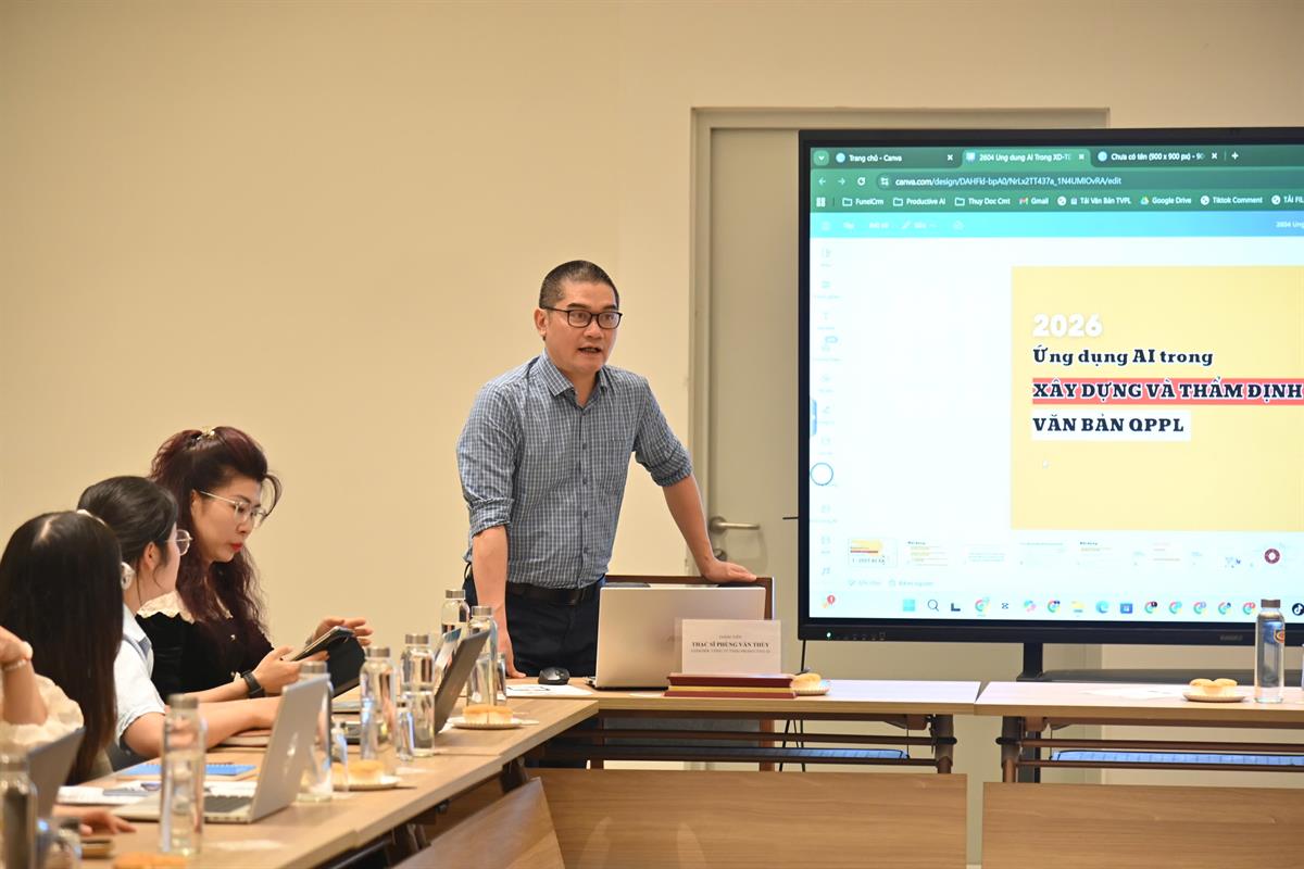 Tại buổi tập huấn, Báo cáo viên - Phùng Văn Thùy, Giám đốc Công ty TNHH Productive AI đã giới thiệu tổng quan về các công cụ AI như: ChatGPT, NotebookLM, Gemini Deep Research, Perplexity. Nội dung tập huấn tập trung vào kỹ năng sử dụng AI soạn dự thảo văn bản quy phạm pháp luật: Từ chính sách đến Dự thảo điều luật và Kiểm tra chồng chéo; dùng AI thẩm định và so sánh: Scan hồ sơ thẩm định và So sánh dự thảo trước - sau tiếp thu.